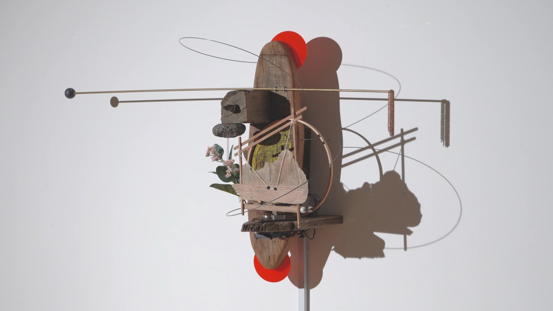 오래된 나무, 야들한 실, 반짝이는 조명과 같은 재료들은 동작하는 장치와 만나 삶이 내포한 여러 가지의 감정을 드러내죠.