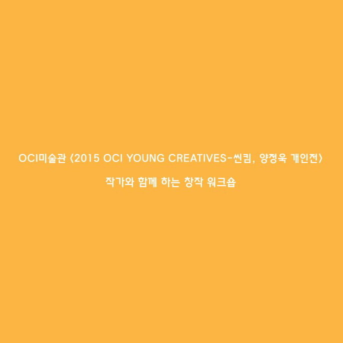 OCI미술관에서는 ‘2015 OCI YOUNG CREATIVES-씬킴, 양정욱’ 전시와 더불어 ‘작가와 함께하는 창작 워크숍’의 어린이 참여자를 모집합니다.