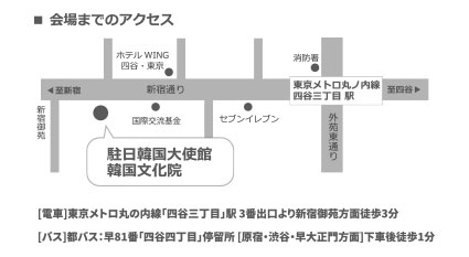 (〒160-0004東京都新宿区四谷4-4-10駐日韓国大使館 韓国文化院1階)