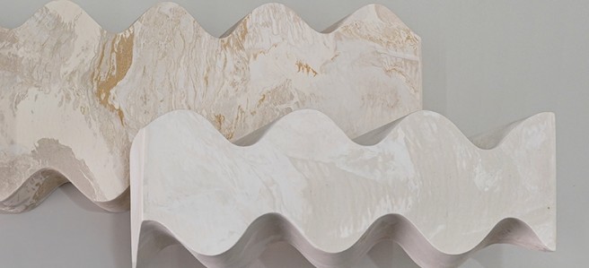 《아치 모션》은 상이한 재료와 이미지를 교묘하게 조합하여 관람자의 지각을 혼란스럽게 하는 미세한 불일치의 공간으로 조성된다. 전시 전체에서 반복되는 물결무늬는 언뜻 보면 재료의 차이와 무관하게 일정한 형태를 부과하는 산업의 논리를 따르는 듯하다. 그러나 가까이서 보면 각각의 재료들이 주어진 형태를 구현하기 위해 상당히 노력하고 있음을 알아볼 수 있다. 작가는 무너지기 쉬운 점토와 부러지기 쉬운 집성목으로 구현할 수 있는 곡선의 유사성과 차이를 고려하면서 오브제의 형태를 잡고 공간을 구성했다. 두 재료는 대조적이지만 자연과 인공의 이미지가 절충적으로 섞여 있다는 점에서는 서로 닮았다. 이들은 합성수지처럼 완전한 인공물로 보이지도 않고, 그렇다고 돌이나 원목처럼 완전한 자연물로 보이지도 않는다. 이러한 양가성은 2021년 개인전 《눈 밖의 이미지》에서 좀 더 직설적으로 연출되었는데, 여기서 도자와 집성목 오브제는 각각 대리석 제품과 인테리어용 관엽 식물을 모사하며 가공된 자연으로서 자기 자신을 관조하는 태도를 취했다. 재료와 그것을 통해 구현되는 이미지 사이에는 닮은 점이 있었지만 그 유사성은 자연스럽게 표출되는 것이 아니라 어떤 단절을 가로지른 결과였다. 작가는 이 간격을 합성 재료의 혼성성에 국한되지 않는 시각적 물체의 고유한 이중성과 연관 지었다. 사물의 내적 구성과 외양 사이에는 불가피한 어긋남이 있다. 오늘날 이미지는 그 틈새를 타고 미끄러지며 한 물체에서 다른 물체로 매끄럽게 옮겨 다닌다. 이렇게 파도치는 이미지들 사이에서 물체를 만드는 느린 손은 어떻게 반응해야 할까?