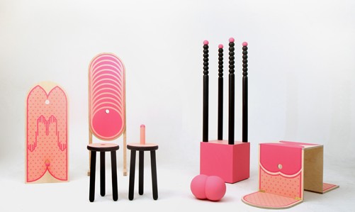 <자가수상을 위한 무대>는 둥근 나무의자의 뒷배경으로 상장에서 흔히 발견되는 무궁화 도상 좌우로 일상의 기물들이 입시도안집에서 볼 수 있는 디자인을 위한 편화(stylization)로 제작되어 걸려 있다. 드릴, 망치 등 공구에서부터 화가들이 사용하는 파레트에 이르기까지, 사물들이 마치 컴퓨터 바탕의 이모티콘처럼 널려 있다. 이제 우리는 자신이 잘한다고 생각하는 어떤 일을 떠올리며 그것과 연관된 사물을 ‘클릭’하여 나무의자 위에 놓고 엔터를 치듯 획득하면 된다. 그 다양한 물건들에는 성인용품과 게임 아이템까지 오늘날 한국사회에서 소유하고 싶어 하거나 직업을 의미하는 모든 것들이 망라되어 있다. 이를테면 공부를 잘해야 좋은 대학에 갈 수 있거나 좋은 기업체에 취업할 수 있다는 것은 사실은 개인의 선택이라기보다는 조직의 선택을 의미한다. 합격자명단이 굳이 발표되는 것도 그러한 선택의 주도권이 조직에 있음을 확고히 하는 것이다. 하지만 전시장의 한 벽면을 차지한 수많은 사물들은 아주 가볍게 커서만 옮기면 되는 컴퓨터 화면 속 세계 같지만 눈앞에 실재하며 사물을 만지게 한다. 누구라도 선택할 수 있고 획득할 수 있는 그 무대는 입시미술을 경험한 사람에게 학교에 의해 선택되어진 개인이 아닌, 학교를 선택하는 개인으로서의 쾌감을 맛볼 수 있게 할 것이다.