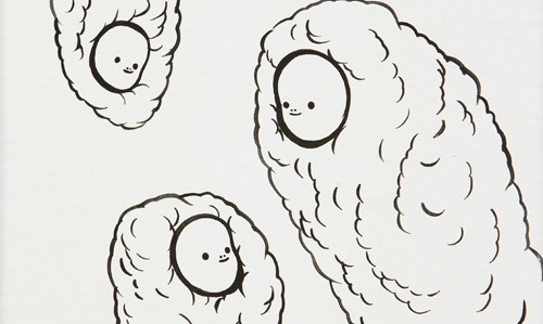 김혜나가(를) 부려 먹는 형상들은 일견 전후 맥락이나 별다른 사연 없이 후다닥 득세했다 완전히 괴멸하는 것처럼 보이지만, 인물들이 갖는 형상의 진화에는 나름의 서사가 있다. (이때 서사란 기실 다양한 양상의 신체 훼손 욕망을 일컫는다. 손발이 잘려나가는 과정에 “아쿠신나”, 정상적으로 눈동자를 그려 넣고 “더 무섭다”, 목을 떼어내 “어른이 됐구나” 같은 텍스트를 삽입한 그의 드로잉에는 신체 변형에 대한 작가의 흥분이 잘 나타난다). 첫 개인전부터 현재까지 작품에 등장하는 인물들은 대게 하나의 인간이라 하기엔 여전히 불완전한 모습으로, 끊임없이 인간의 모습을 갖추기 위해 변이한다. 속을 알 수 없는 모호한 표정의 “못생긴 것들”(2007년 대안공간 루프의 개인전 제목은