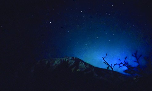 이번 강호연의 전시에서 주목할 만한 부분은 가상의 풍경보다는 ‘무대 뒷부분’이 일반 관객들에게 보다 적극적으로 노출된다는 것이다. 물론 이와 같은 방식은 이미 송은 아트큐브의 전시에서도 선보였었다. 관객은 층위가 다른 방을 차례로 방문하면서 뚫린 창으로 가상의 풍경을 접한 후에 그 광경을 만들어내기 위하여 다양한 물건들이 동원된 방을 순차적으로 들여다 볼 수 있었다. 반면에 이번 전시에서는 각각의 장면과 장면을 조성하기 위하여 사용된 설치 세트가 두 개의 서로 다른 방으로 나뉘어서 배열되게 된다. 아니 정확히 말해서 한 쪽방에는 <산장>과 같이 어두움 속에 별들이 유영하는 광경이 펼쳐지고 반면에 불이 켜진 다른 방에는 가습기와 스탠드만으로 효과를 낸 <모닥불(Campfire)>(2015), 선풍기와 라디오의 잡음으로 파도의 효과음을 만들어낸 <전파(Radio Wave)>(2015)가 전시되게 된다. 결과적으로 관객들은 어두운 한쪽 방에서는 완벽한 가상의 풍경을, 그리고 불이 켜진 방에서는 가상의 풍경을 만들기 위하여 작가가 사용한 작은 오브제와 설치물들을 발견하게 된다.